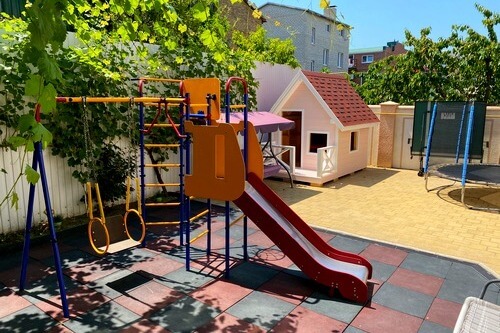 Закрытая, благоухающая, ухоженная. Есть специально отведенные зоны отдыха для гостей дома. Двор очень уютный и порадует не только взрослых, но и маленьких детей!
