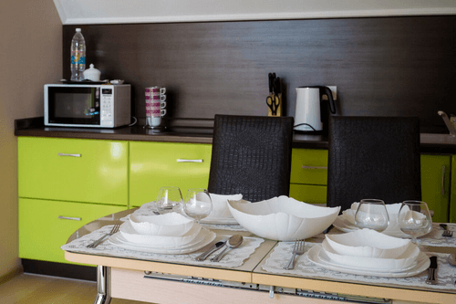 Отдыхающими гостевого дома организуется самостоятельно. Для этого имеются удобные, оборудованные всем необходимым для приготовления и принятия пищи - кухни.